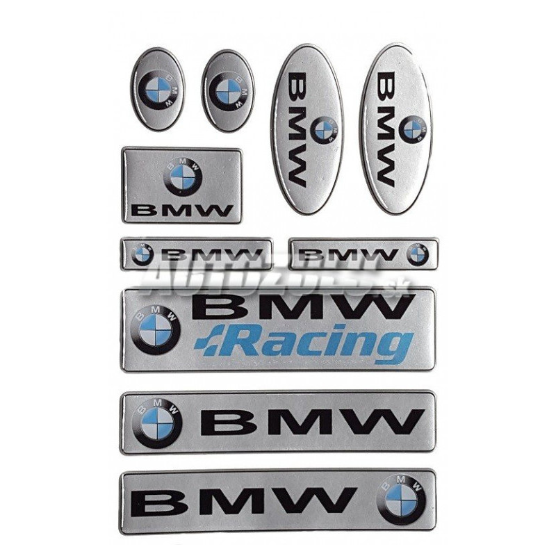 Sada pryskyřičných nálepek BMW různých rozměrů.