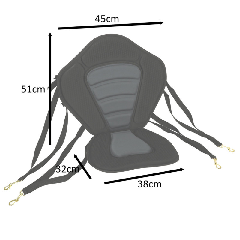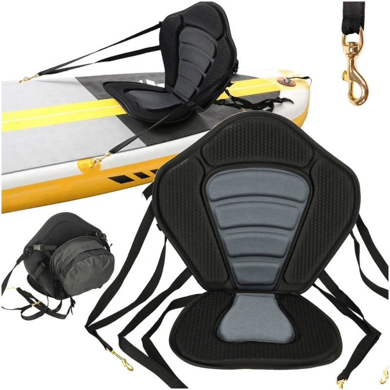 Je navrženo s ohledem na pohodlí a funkčnost, takže bude perfektní i na dlouhých a extrémních vodních výpravách. Má nastavitelné popruhy, které slouží k upevnění sedačky ke kajaku nebo prknu. Na zadní straně opěradla je navíc umístěna taška, do které si můžete pohodlně zabalit věci, jako je telefon nebo klíče.