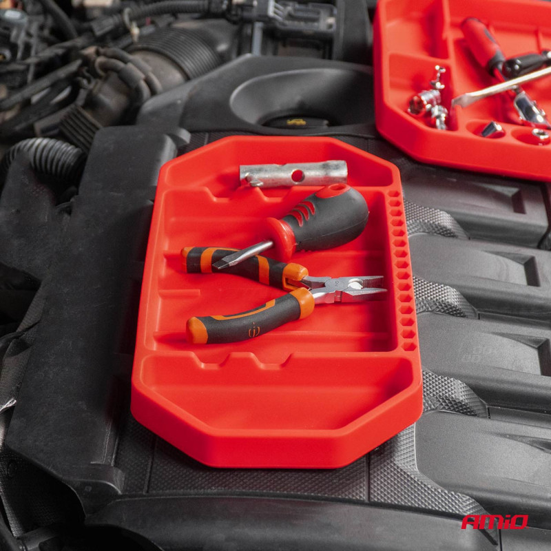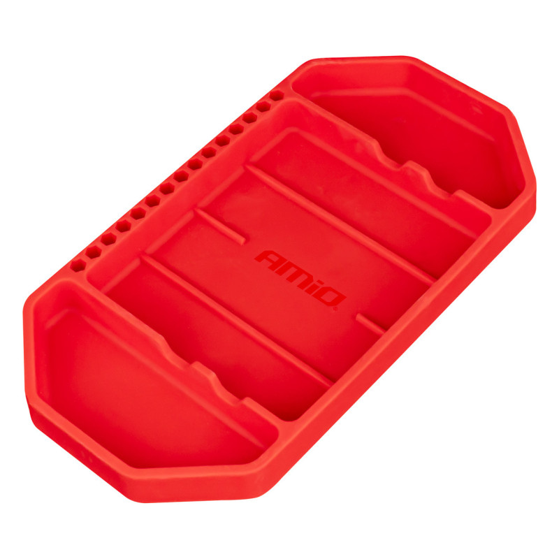 Silikonový zásobník na nářadí AmiO-04270 je flexibilní a protiskluzový podnos navržený pro bezpečné uložení drobných součástek, nářadí a příslušenství během práce v dílně, garáži nebo při domácích opravách.