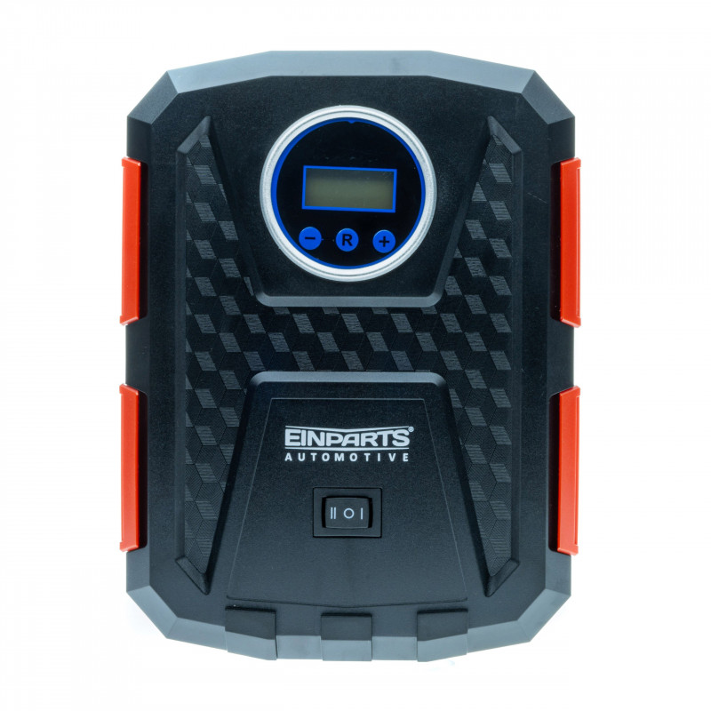 12V 10 Bar 150 PSI automobilový kompresor je známy ako EINPARTS AUTOMOTIVE a má moderné prostredie, ktoré možno rýchlo použiť pre automobilovú pneumatiku, bicykle, športové autá a mnohé ďalšie zariadenia. Napájaný zo zásuvky v automobile. Tu je návod, ako používať elektronický manometer a LCD obrazovku.
