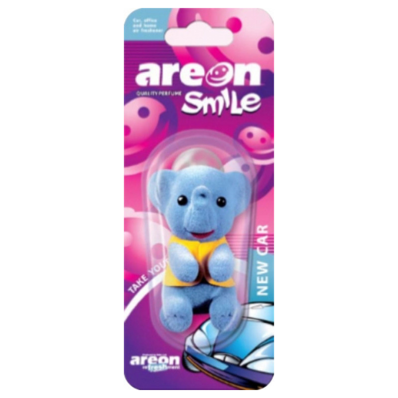 Osvěžovač vzduchu v podobě roztomilé postavičky. Provedení slůně, barva modrá. Napuštěno vůní New Car (nové auto). Dá se zavěsit nebo připevnit o hladké povrchy pomocí gumového úchytu.