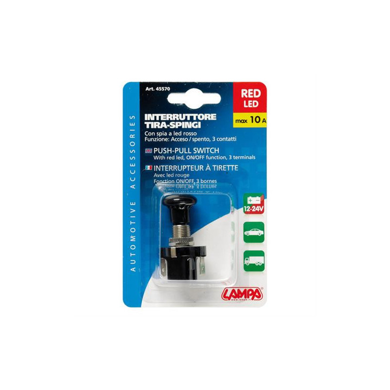 Spínač 12V 10A push-pull červený