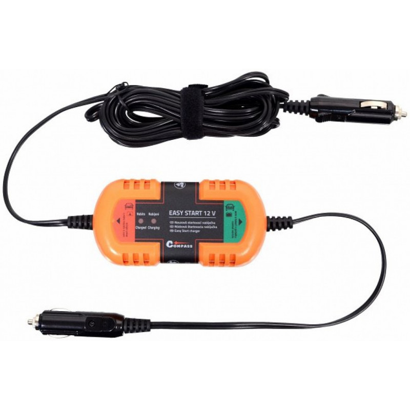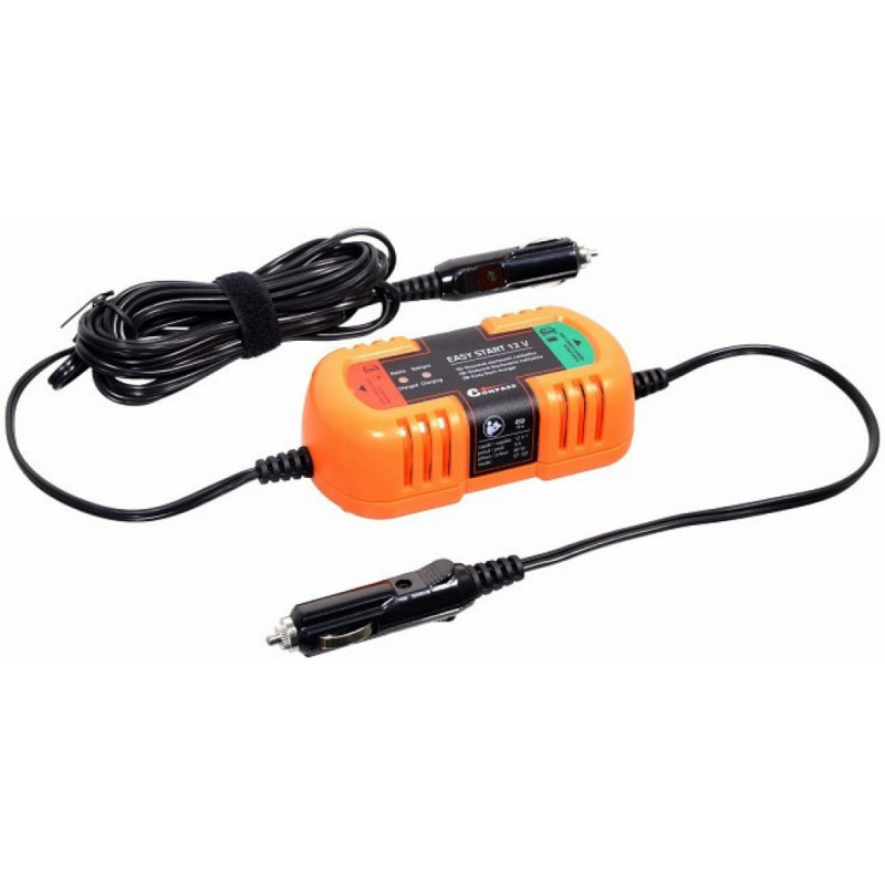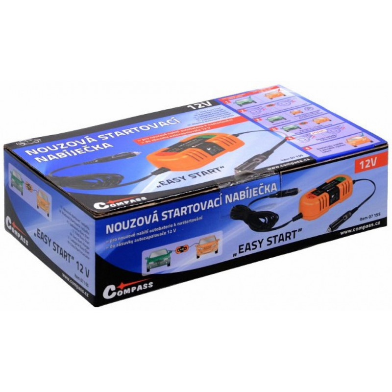 Startovací nabíječka pro nouzové nabití autobaterie k nastartování vozidla. Zapojuje se do zásuvky autozapalovače vozidla s nabitou baterií a vozidla která je třeba nastartovat. Určeno pro napětí 12 V. Odpadá tak startování přes klasické startovací kabely , kdy je nutné u obou vozidel otevírat kapotu a zajišťovat přístup k autobateriím. Díky celkové délce nabíječky s kabely ( 4,5 metru ) není nutné manipulovat s vozidly, aby stáli velmi blízko sebe jako u běžných startovacích kabelů.