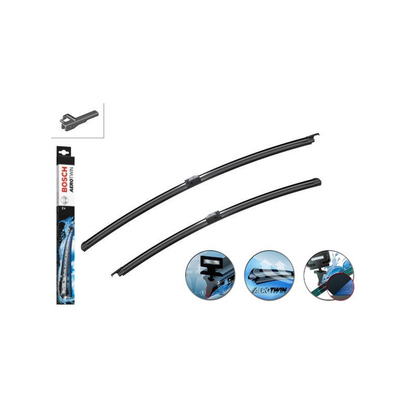 Model stěračů speciálně určený pro tento vůz. Stěrače AeroTwin s plochou lištou jsou bezramínkové stěrače s aerodynamickým tvarem. Díky rovnoměrné síle přítlaku v celé délce stírací lišty se snižuje opotřebení a zvyšuje se doba životnosti.