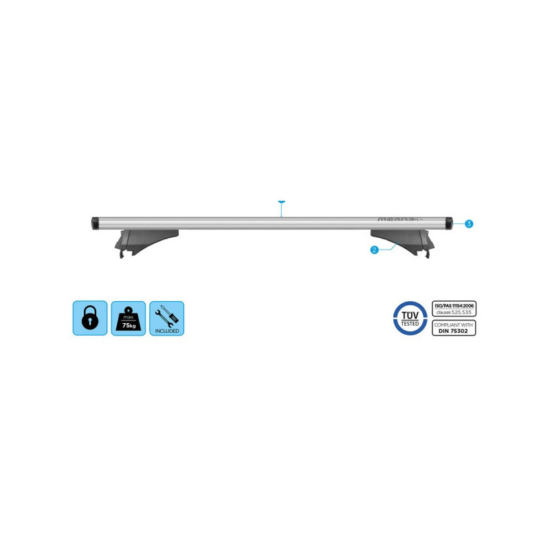 Kompletní střešní nosič MENABO BLADE L 127 cm pro vozidla s atypickými střešními ližinami. Materiál hliník. T-drážka 20 mm, která je kompatibilní s příslušenstvím THULE, max. nosnost 75 kg, aerodynamický tvar, sada obsahuje 2 ks příčníků a sadu patek Alfa High. Profil příčky 80 x 30 mm. Nosič je uzamykatelný, zámky jsou součástí sady. Hmotnost 5 kg.