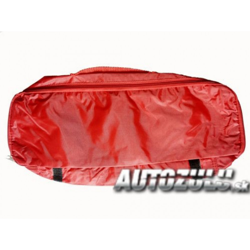 Taška je určena pro povinnou výbavu auta bez loga červené barvy. Materiál tašky je PVC. Jedná se o kvalitní omyvatelnou látku , syté barvy. Potisk tašky se neodlupuje. Na spodní straně tašky se nacházejí suché zipy, které zajišťují bezproblémové upevnění tašky povinné výbavy ve vozidle .