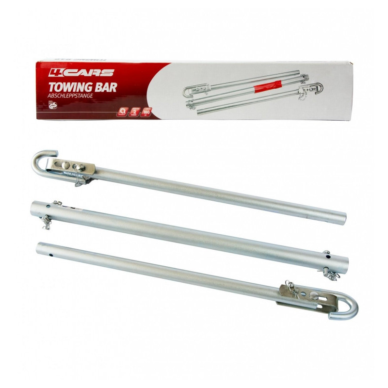 Návod k použití: 1. Ujistěte se, že obě tažná oka jsou přibližně na stejné úrovni. Jejich umístění naleznete v manuálu vašeho vozidla. 2. Sestavte tři části tažné tyče a zabezpečte je pomocí při...