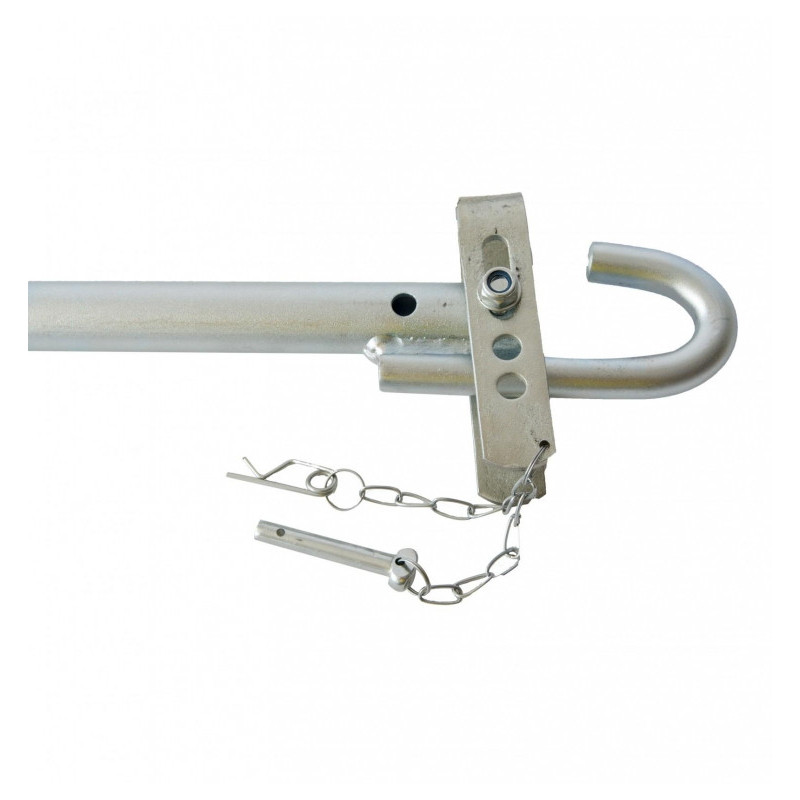 2. Sestavte tři části tažné tyče a zajistěte je pomocí přiložených kolíků a spon. Ujistěte se, že oba háky tažné tyče směřují stejným směrem.