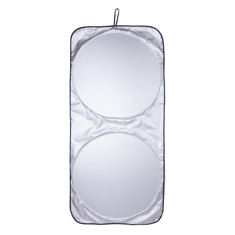 Blokuje UV záření. Udržuje vůz chladněji. Součástí je kapsa pro snadné uložení. POKYNY: Vyjměte složenou clonu ze sáčku. Rozbalte elastický pásek ze složeného stínítka a vložte jej pod čelní sklo. Posuňte clonu do čelního skla a nastavte pomocí pásků.