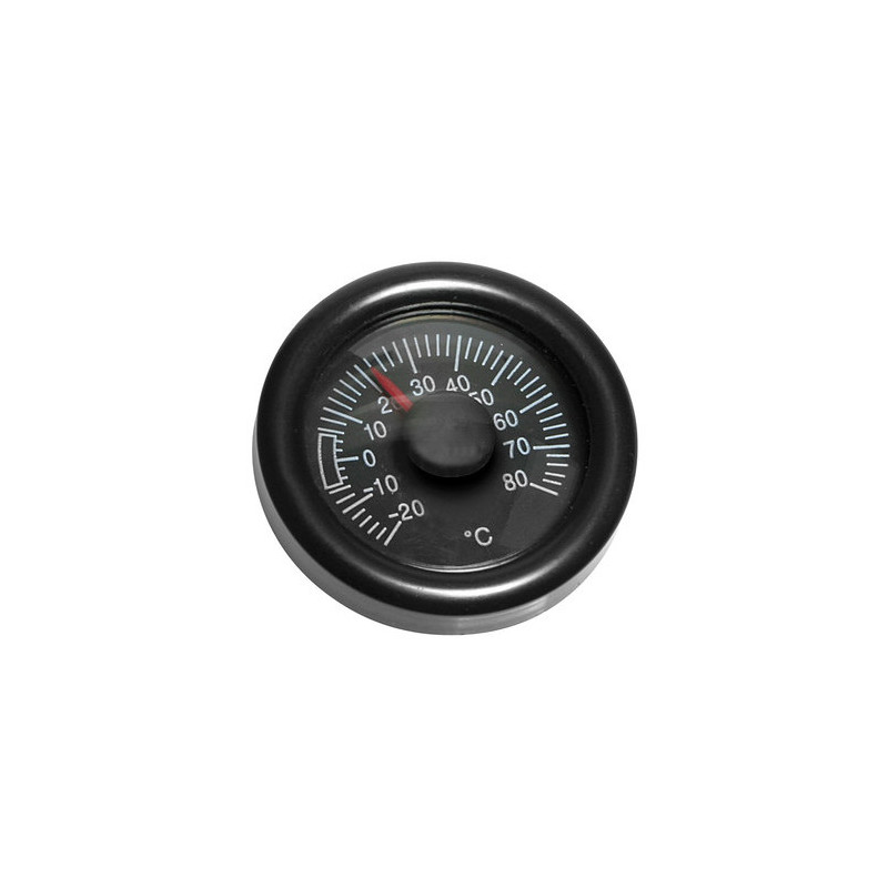 Analogový teploměr do auta ukazující vnitřní teplotu. Stylový a praktický doplněk do Vašeho auta Teploměr má na spodní straně lepidlo, pomocí kterého jej jednoduše připevníte na palubovou desku. Rozsah měřené teploty: -20°C až +80°C Rozměr: D 48 mm