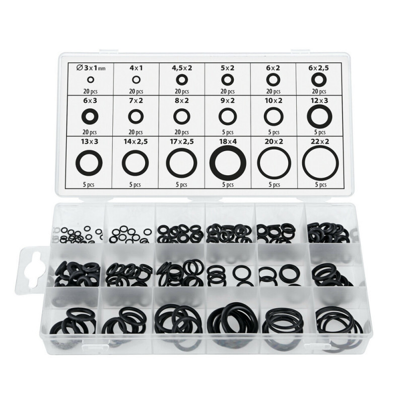 Těsnící kroužky, 225 ks, 18 velikostí Vyrobeno z NBR