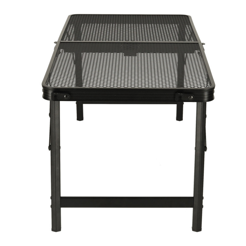 Vďaka hliníkové konstrukci poskytuje tento turistický stůl nízkou hmotnost a odolnost proti korozi, zatímco vrchní deska ze železné síťoviny dodává pevnost a prodyšnost. Je to model, který se skvěle hodí do přírody - hliníkový turistický stůl zůstává odolný i při intenzivním používání a nepříznivých povětrnostních podmínkách. Snadné čištění a rychlé sušení jsou další výhody, díky kterým je vynikající volbou na pláž, na pozemek nebo na festival.