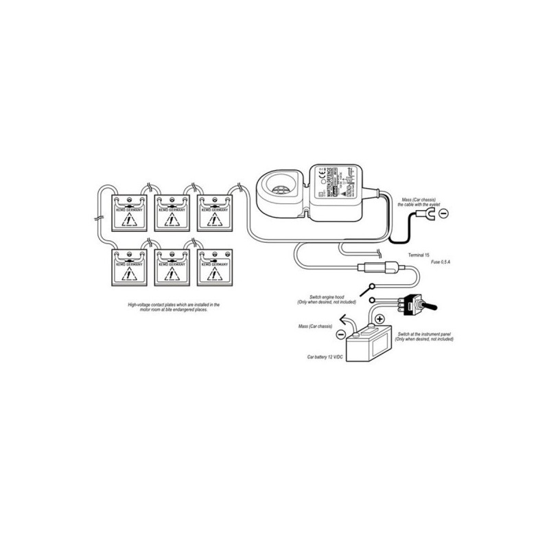 Zařízení vysílá ultrazvukový signál o frekvenci 22 kHz. Kromě toho obsahuje 6 vysokonapěťových ploch, které jsou nabité kondenzátorem na 300 V. Tyto vysokonapěťové desky se instalují pod kapotu v motorovém prostoru v místech v blízkosti vody, vzduchových hadic, startovacích kabelů atd. Při kontaktu s deskou dostane zvíře elektrický šok, který ho okamžitě vyplaší. Vysokonapěťová deska se automaticky znovu nabije.
