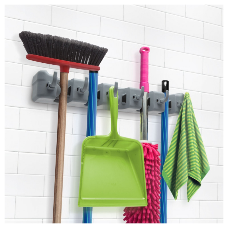 Držák výrazně ušetří místo při uložení úklidových pomůcek nebo nářadí. Vhodný do interiéru i exteriéru. 5 úchytných míst pro jakýkoli nástroj (průměr rukojeti 1,5-max.3,5 cm). Rukovat automaticky zapadne na místo. 6 šrouby uchytitelný na zeď (jsou v balení).