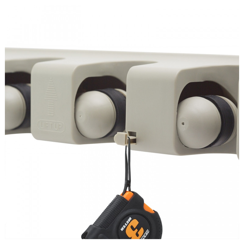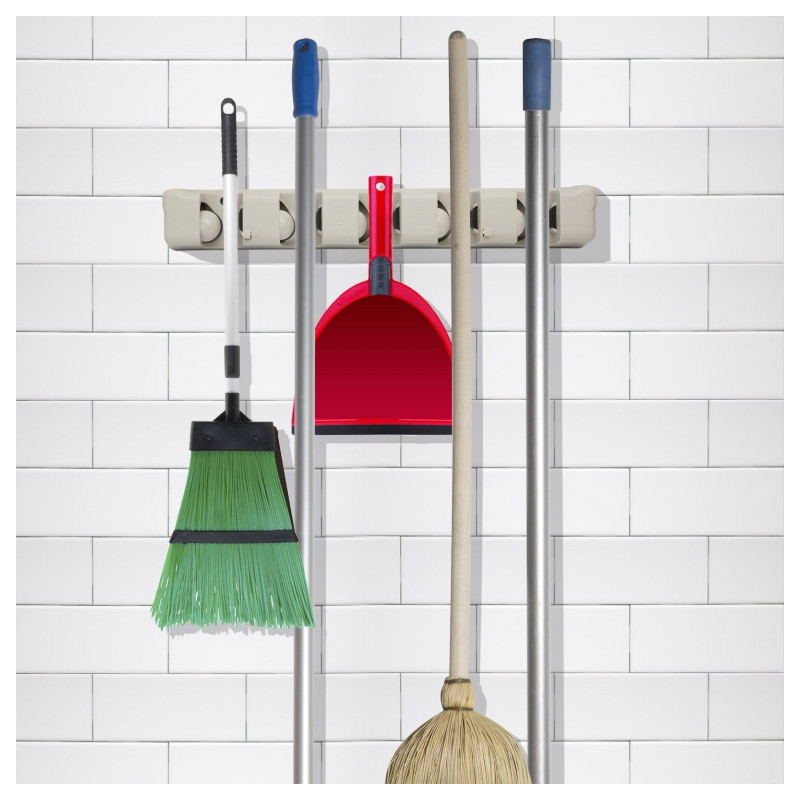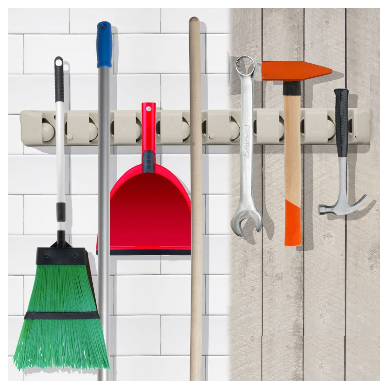 Držák výrazně ušetří místo při uložení úklidových pomůcek nebo nářadí. Vhodný do interiéru i exteriéru. 5 úchytných míst pro jakýkoli nástroj (průměr rukojeti 1,5-max.3,5 cm). Rukovat automaticky zapadne na místo. 3 šrouby uchytitelný na zeď (jsou v balení).