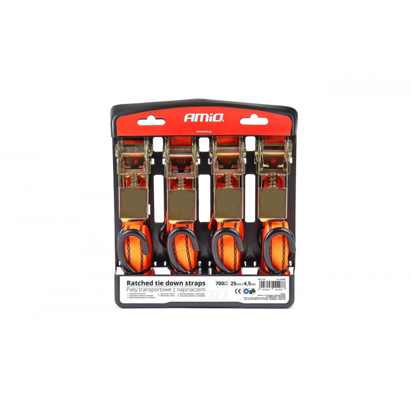 Upínací pásy s ráčnou 700kg 25mm 4,5m 4ks BELT-03
