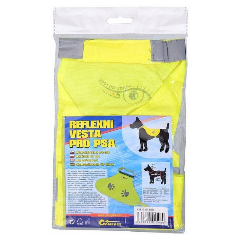 Výstražný reflexní doplněk pro psa, dobře viditelný na velkou vzdálenost. Zapínání na suchý zip kolem krku a kolem těla psa. Vhodné pro psy do cca 30kg, s obvodem krku do cca 45 cm a obvodem t...Příjemce :