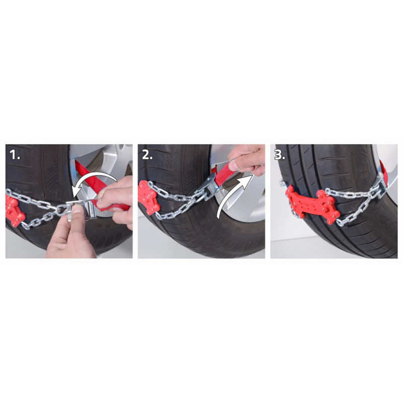 Jsou ideální pro nouzové vyproštění vozidla při sněhu, náledí nebo na blátě. Jsou vhodné pro všechny běžné rozměry pneumatik a lze je použít jak na ocelové, tak na ALU disky kol.