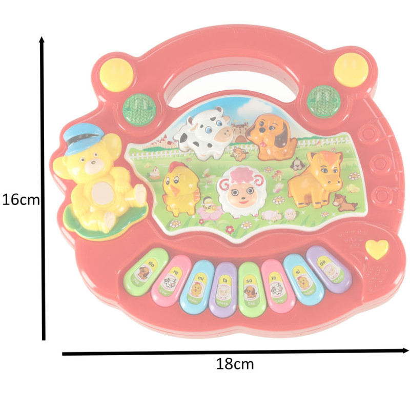 Vzdělávací klavír – Zvuky zvířat z farmy je interaktivní hudební hračka pro děti, která spojuje učení se zábavou. Klavír přehrává zvuky zvířat, melodie nebo jednotlivé tóny v závislosti na zvoleném režimu. Barevné provedení a světelné efekty okamžitě upoutají pozornost dítěte a podpoří rozvoj jeho kognitivních schopností.