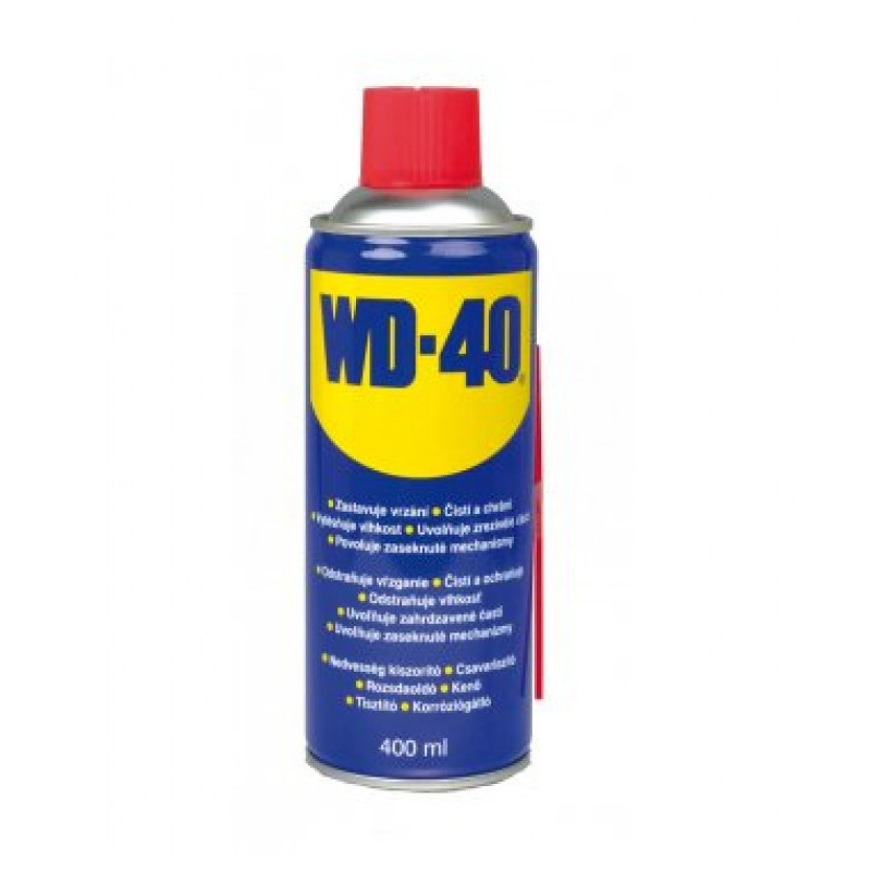 Univerzální mazivo WD-40 čistí, chrání, vytěsňuje vlhkost, zastavuje vrzání, uvolňuje zrezivělé části a povoluje zaseknuté mechanismy.
