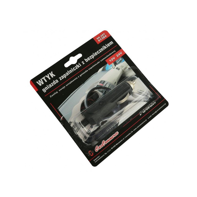 Plastový montážní konektor do autozapalovače Kabel se připojuje pomocí pájení Napájecí napětí: 12 V nebo 24 V DC Vestavěná pojistka: 3 A Zatížení: Max. 3 A