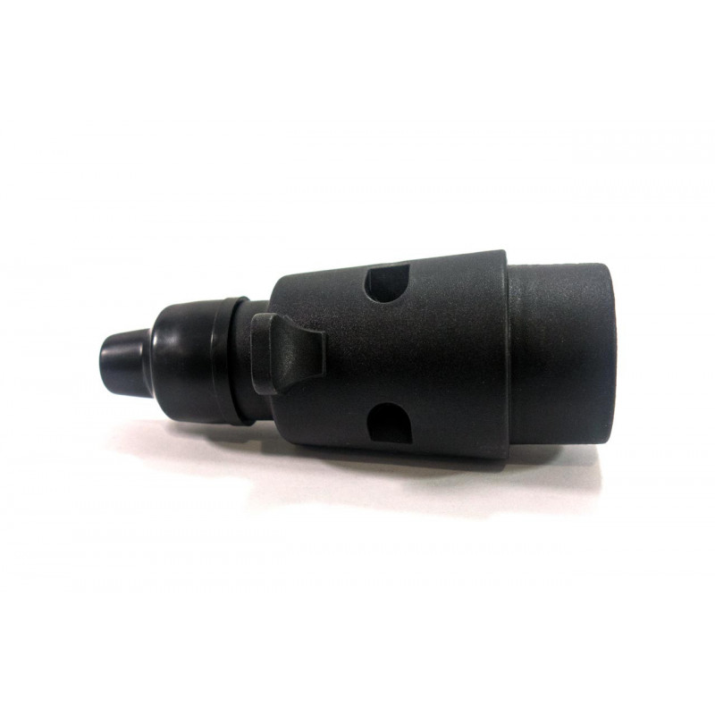 Zástrčka na přívěsný vozík z pevného plastu se 7 pólovým připojením a 12V napětím.