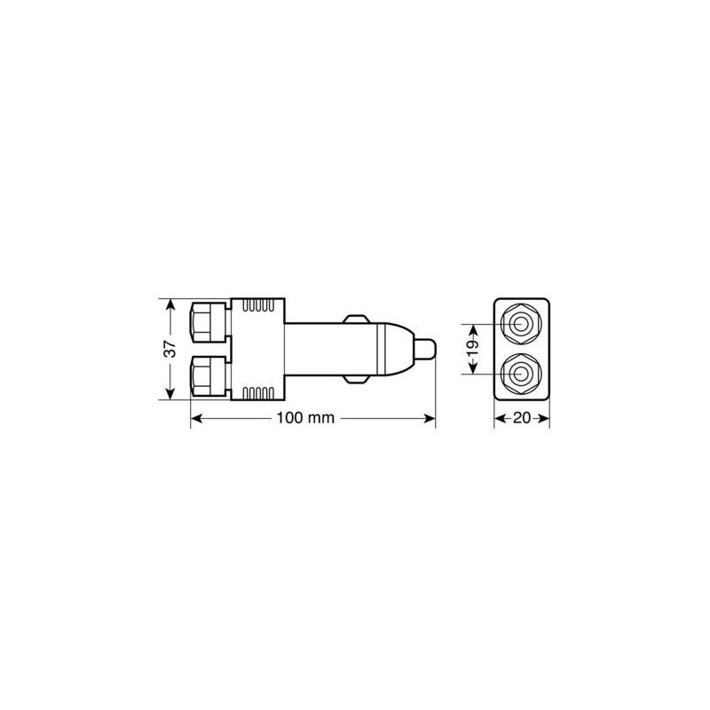 Zástrčka zapalovače s rychlospojkami 12/24 V 10 A Rozměry: VSTUP ---> 12/24 V - standard VÝSTUP ----> rychlospojky - 10 A
