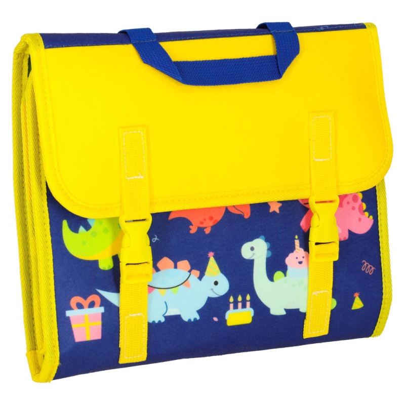 Filcová manipulační tabule ve tvaru batohu je ideální edukační hračka pro děti od 3 let. Kombinuje učení s hrou a podporuje samostatnost, jemnou motoriku a poznávání světa prostřednictvím interaktivních prvků. Dinosauří motiv osloví každého malého objevitele.