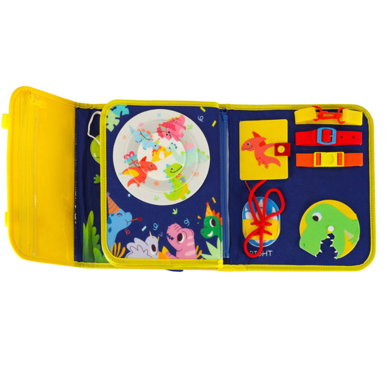 Senzorická tabule Montessori Dino je skvělým dárkem, který dítě zabaví a zároveň pomůže rozvíjet praktické dovednosti. Díky praktickému tvaru batohu si ji dítě může vzít kamkoliv s sebou – do školky, na cesty nebo k prarodičům.