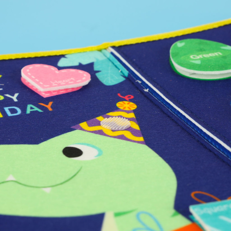 Po složení vypadá jako retro batůžek s úchyty a držadlem. Po rozložení připomíná knihu s různými aktivitami: zipy, tkaničky, přezky, karabiny a prvky na suchý zip. Děti se tak učí zavazovat tkaničky, zapínat zipy a poznávat tvary, barvy i čísla. Některé části jsou označeny anglicky – ideální pro první seznámení s cizím jazykem.